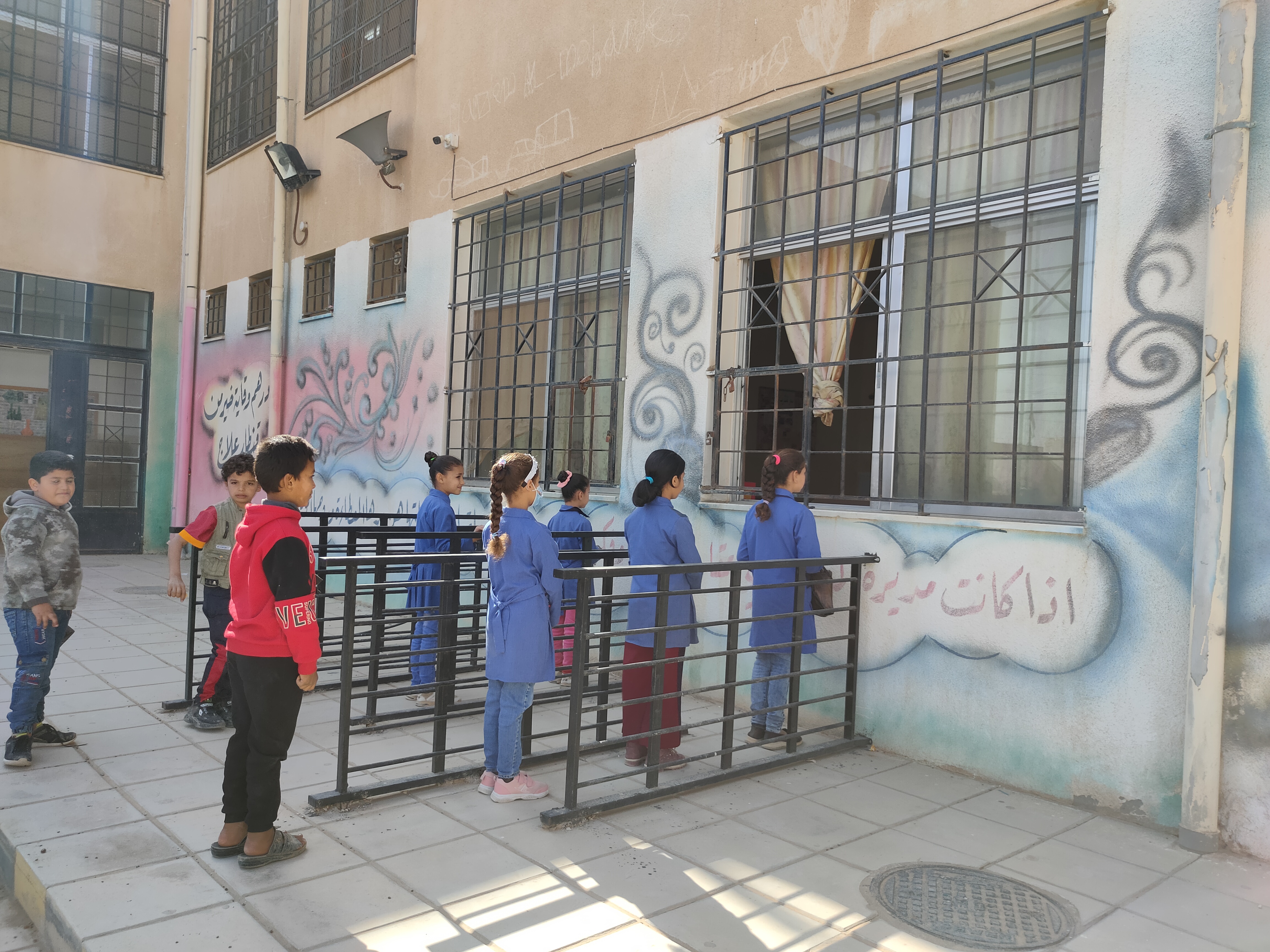 عمل ممرات حديدية لتنظيم عملية الدور خلال الشراء من عملية المقصف من خلال عمل اكثر من ممر مما يؤدي الى سهولة الشراء وعدم وجود ازدحام ومشاكل