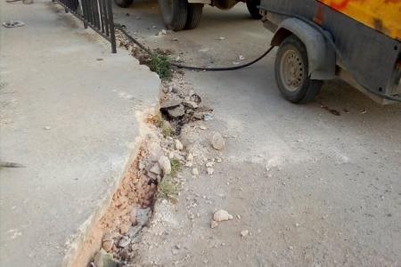 في أحد جوانب المدرسة يوجد ضرر كبير في أحد الأسوار الرئيسية للمدرسة وبالتالي يتسبب هذا الضرر بضرر أخر من الناحية الأمنية للمدرسة