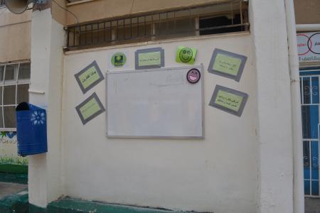 عدم إستغلال الجدران في المدرسة لتكون جدران تفاعلية للطابات ومقصد لتفريغ التعابير بشكل حضاري
