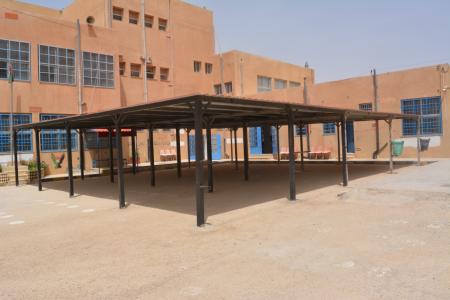في فصل الصيف نواجه تحدي عدم وجود مظلة ليستظل الطلبة تحتها أثناء الطابور الصباحي أو الفرصة