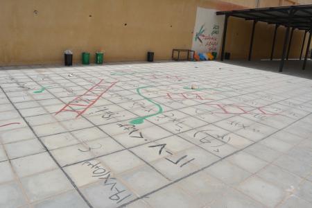 لدى المدرسة ساحة العاب مغلقة لأنها بحاجة الى صيانة