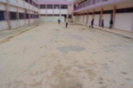 ساحة مدرسية غيرمعبدة و مهيأة للعب الاطفال