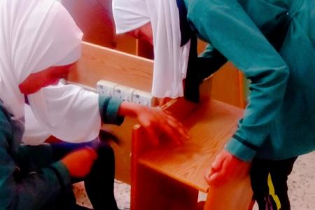 وجود عدد من الطاولات في غرفة الحاسوب بحاجة الى صيانة واعادة تأهيل
